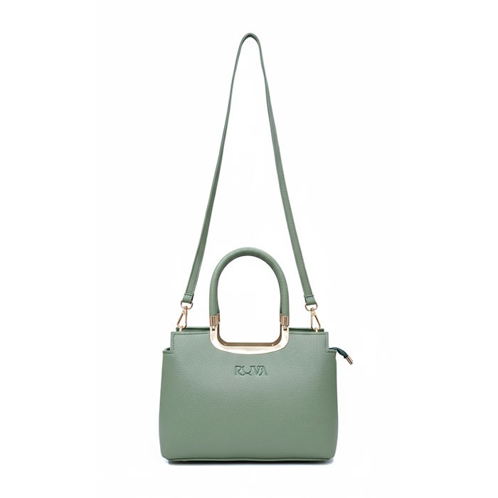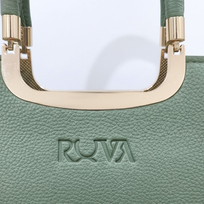 A chic luxury handbag crafted from high-quality textured rexine with gold accents and RUVA’s signature logo.