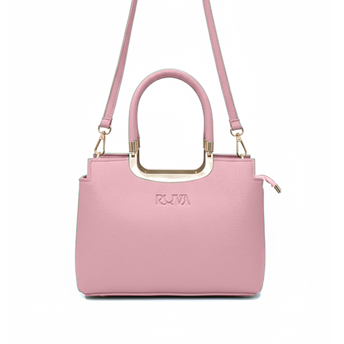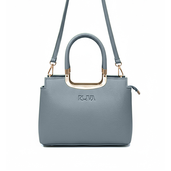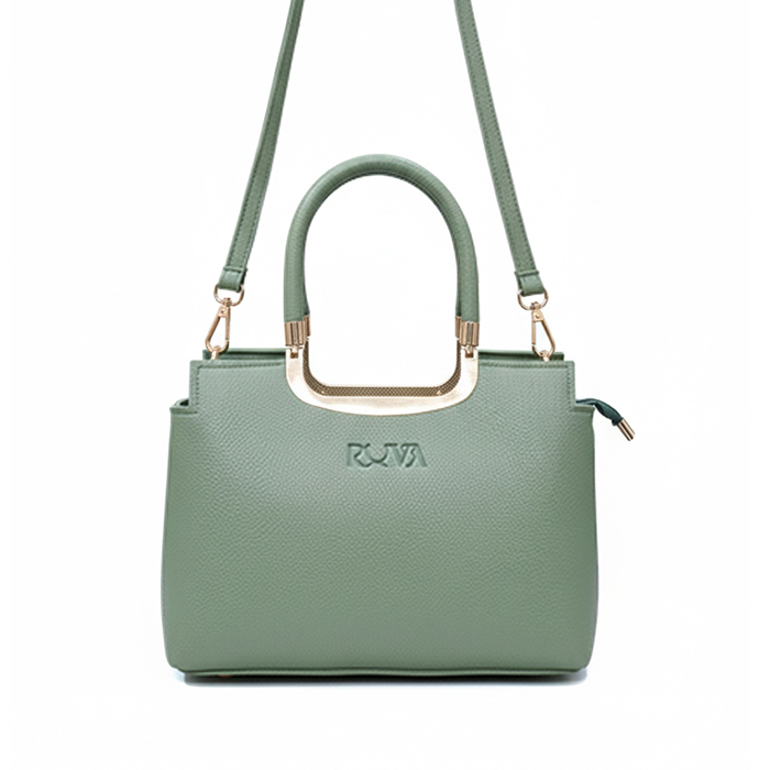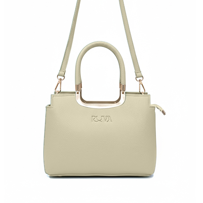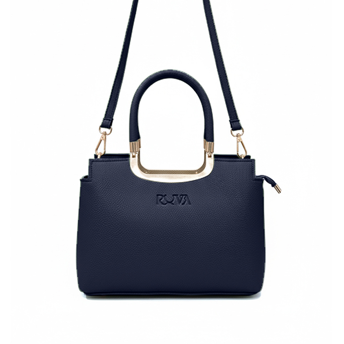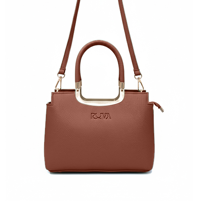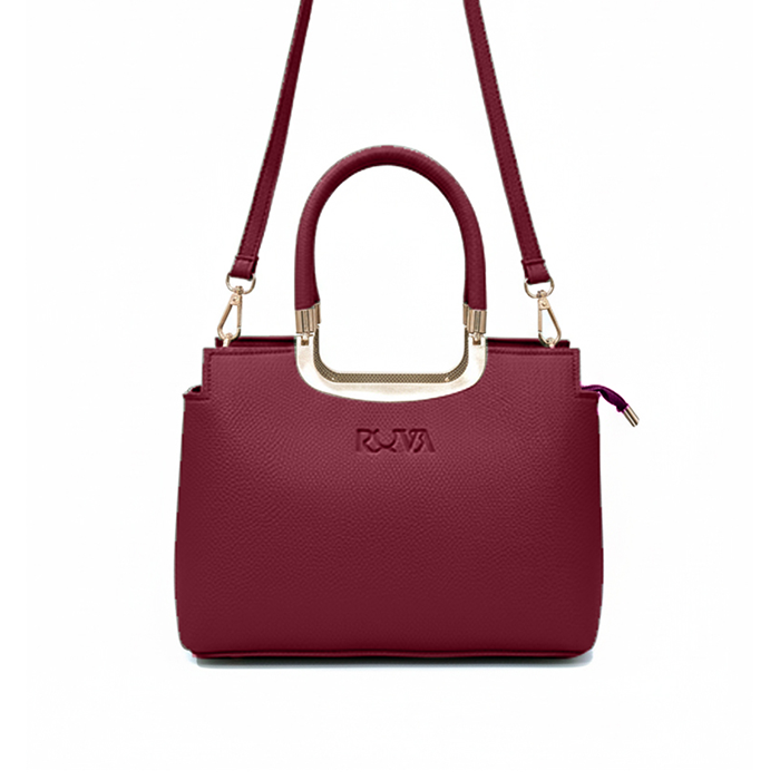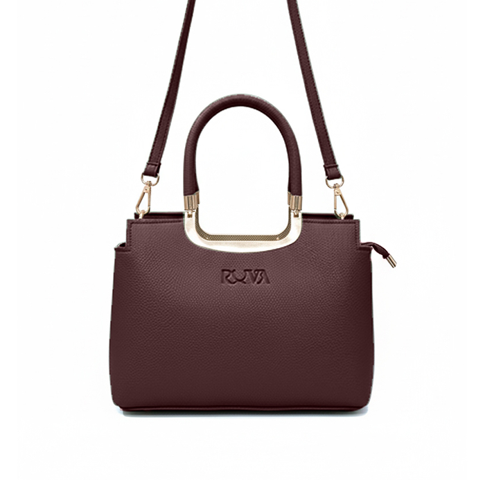 A chic luxury handbag crafted from high-quality textured rexine with gold accents and RUVA’s signature logo.